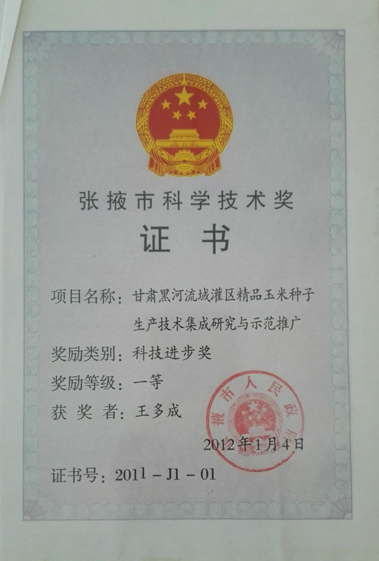 2012年榮獲張掖市科技進(jìn)步一等獎…